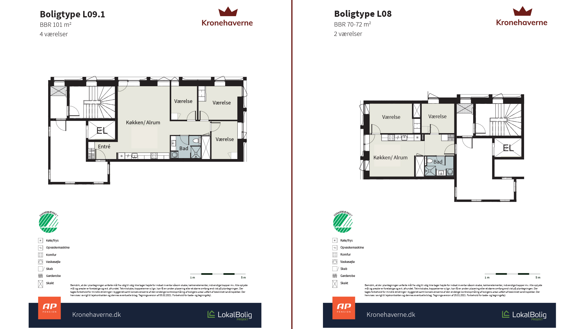 Der er rig mulighed for at stable et virkelig hyggeligt bofællesskab sammen i Kronehavernes store lejeboliger. Vil du se, hvilke lejligheder der er ledige, og om der er en lejlighed, der kunne passe til jeres roomie-drømme, kan du finde alle plantegninger og lejepriser her.